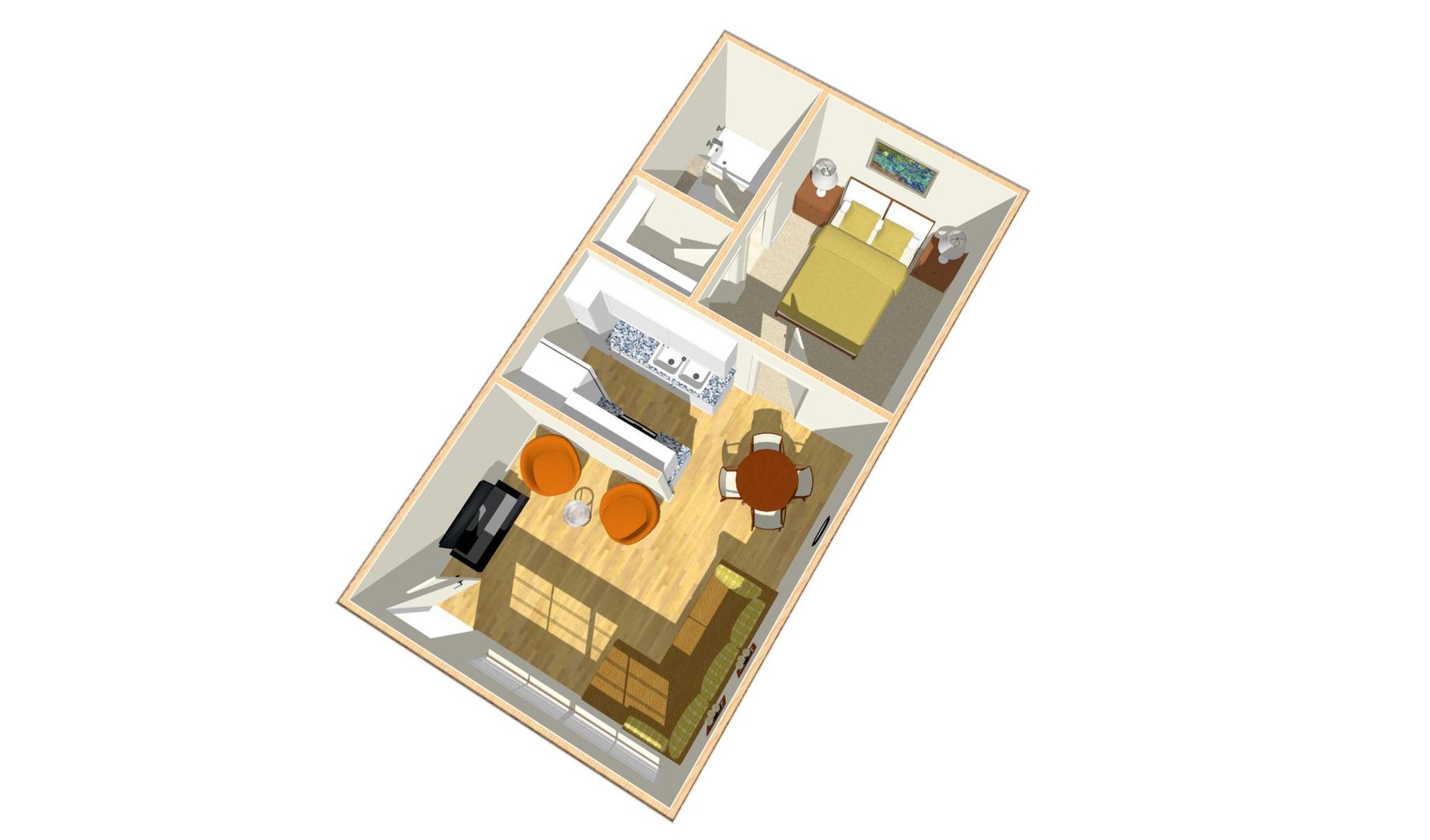1 bed, 1 bath, 650 sq ft
